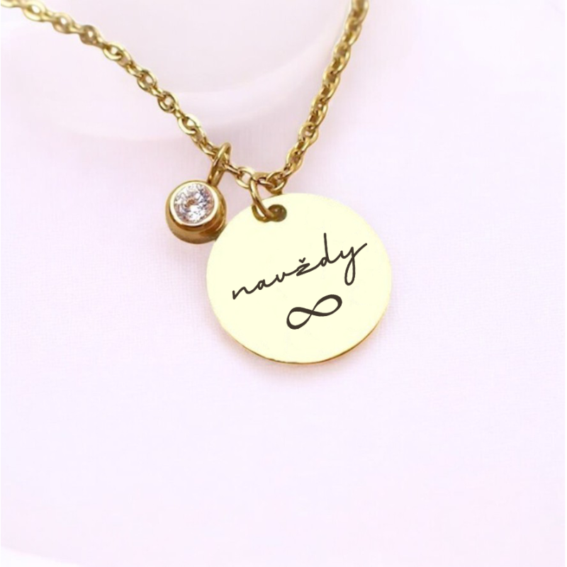 Gravírovanie: Gravírovanie je vykonané na jednej strane medailónika. Na druhej strane je minimalistické logo MOON - luxury jewellery.