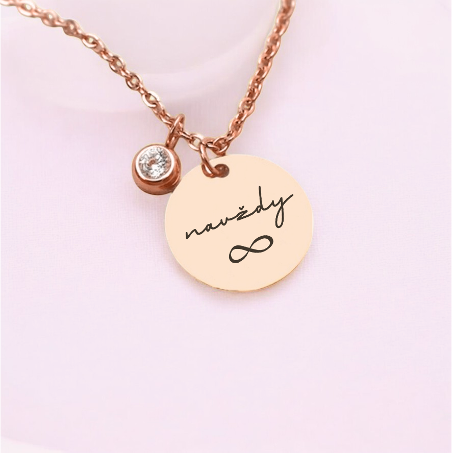 Gravírovanie: Gravírovanie je vykonané na jednej strane medailónika. Na druhej strane je minimalistické logo MOON - luxury jewellery.