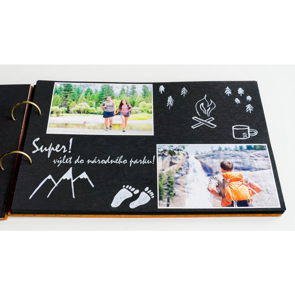 Drevené fotoalbum nie je len obyčajná kniha na fotky – je to osobná pamiatka a štýlový darček, ktorý poteší na 100 %. V albume nájdete kvalitné listy, ktoré sú ideálne na vlepené fotografie a vďaka nim môžete spomienky ešte viac oživiť popiskami alebo kresbami bielou fixkou, ktorú od nás dostanete ako darček.