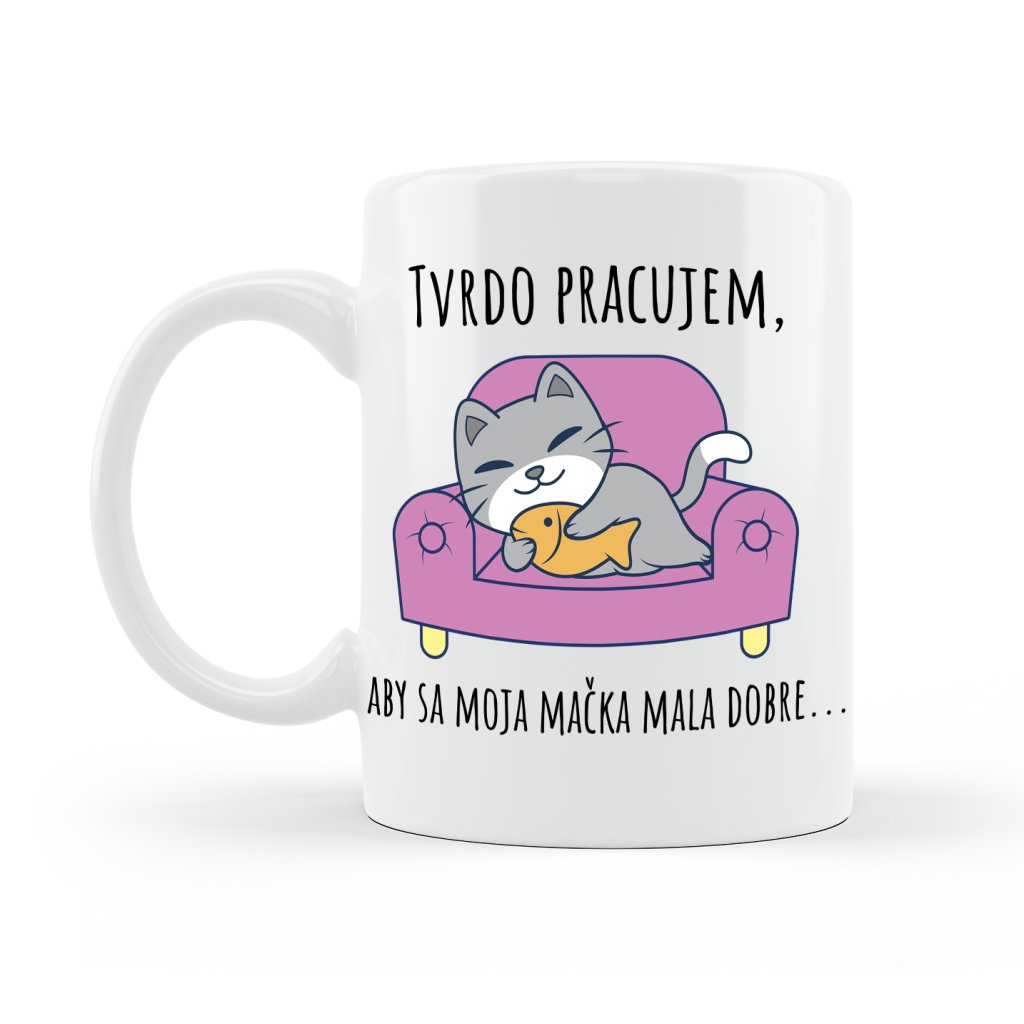 Hrnček Tvrdo pracujem. Farebná Mačka