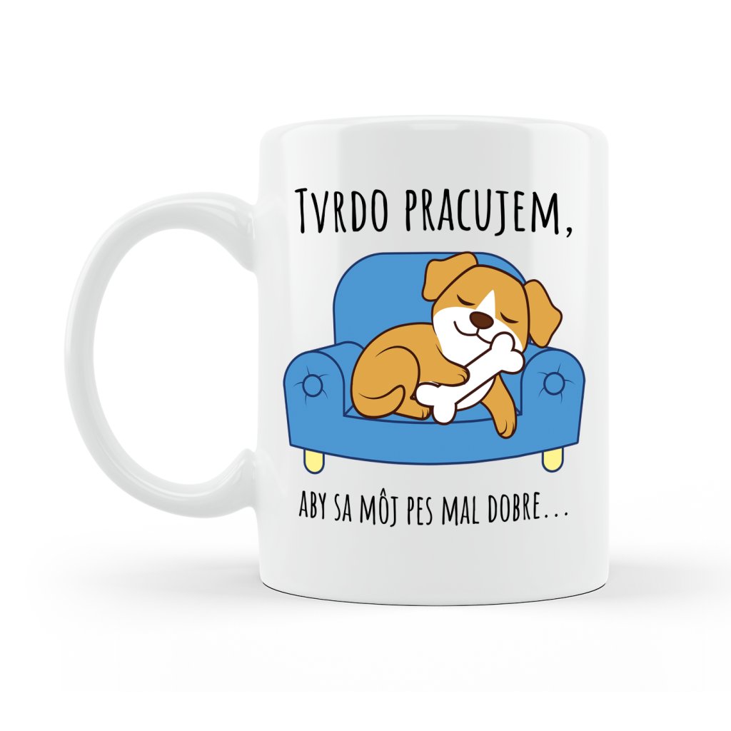 Hrnček Tvrdo pracujem. Farebný Pes