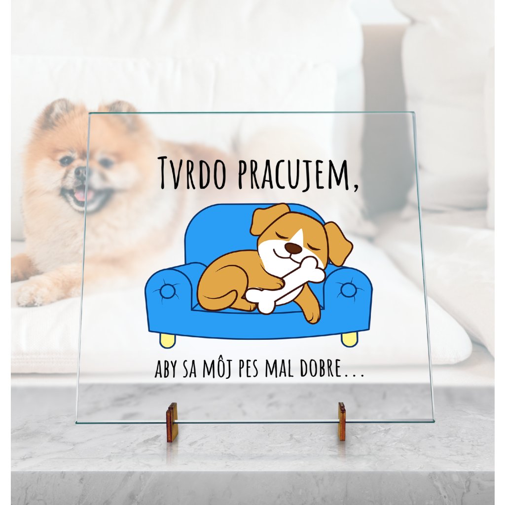 Dekoračná Sklenená doska - Tvrdo pracujem. Farebný pes
