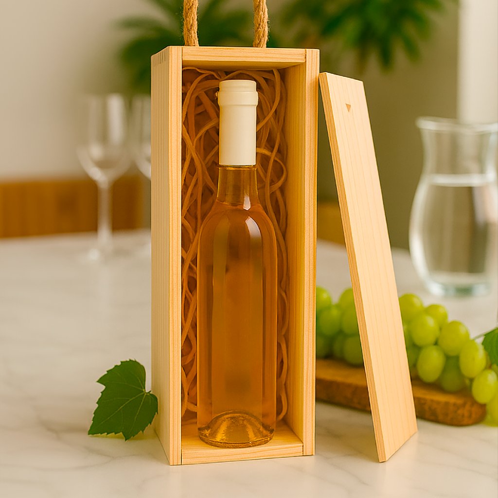 Objavte krásu darovania vína v novom svetle – naša drevená darčeková truhla z borovicového dreva premení obyčajnú fľašu na výnimočný darček.