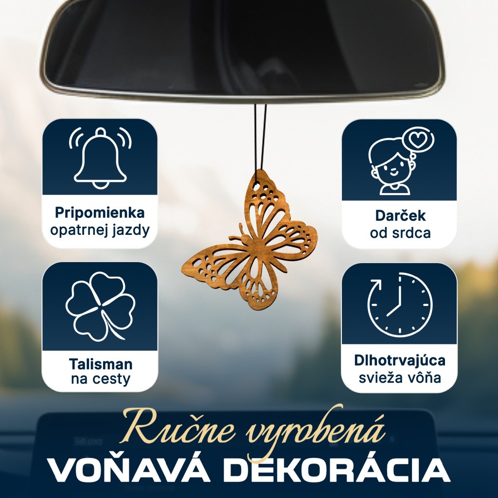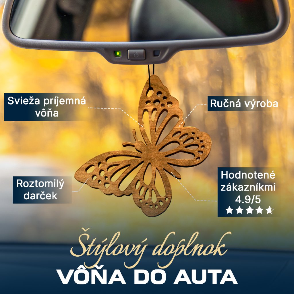 Nezostávajte len pri jednom kúsku. Objavte ďalšie vonné darčeky, ktoré prevoňajú interiér auta. Ženu by mohla potešiť vôňa predstavujúca motýľa, pre mužov treba štvorlístok pre šťastie.