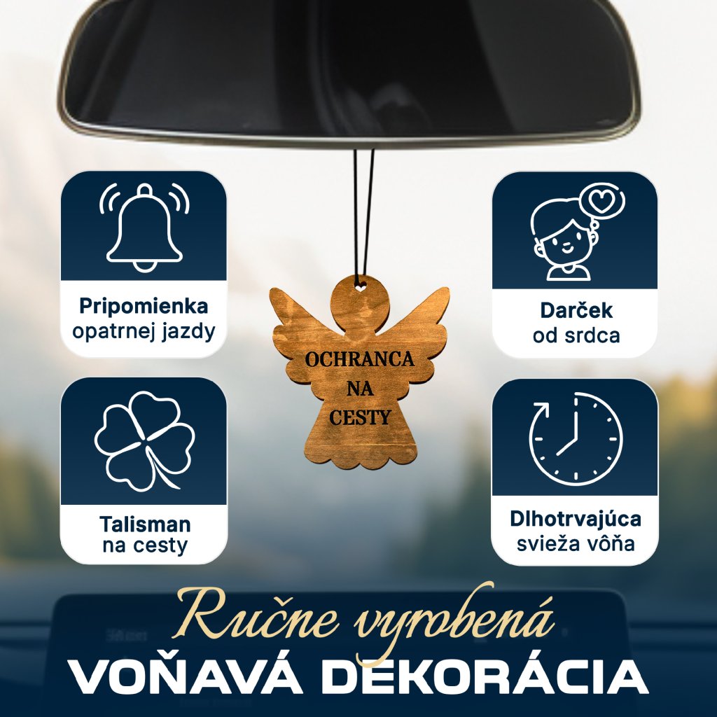 - Originálny drevený prívesok nie je len osviežovačom, ale aj štýlovým doplnkom a ochranným talizmanom na cesty.