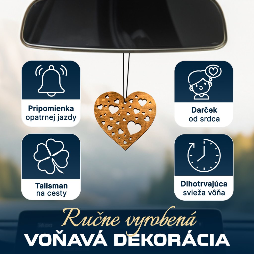 Voňavý talizman do auta je krásnym spôsobom, ako dať niekomu najavo, že vám na ňom pri cestách záleží. Slúži ako jemná výzva na opatrnosť a zakaždým vykúzli úsmev – ako tiché pripomenutie, že láska čaká doma.
