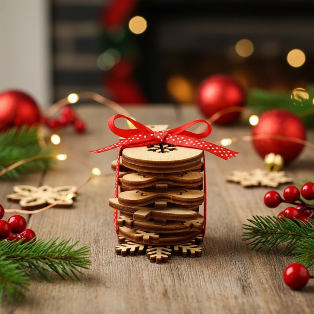 🎁 Elegantné drevené vianočné ozdoby – sada 10 kusov
