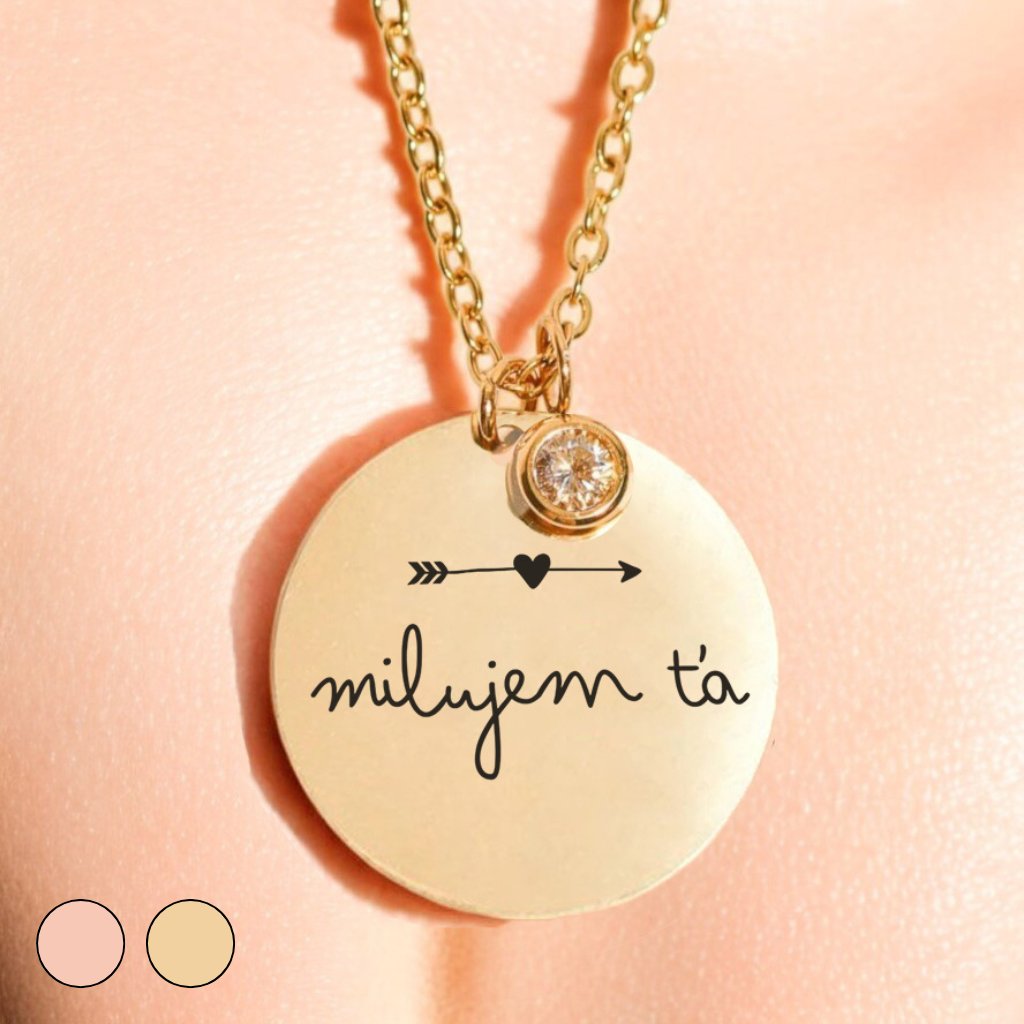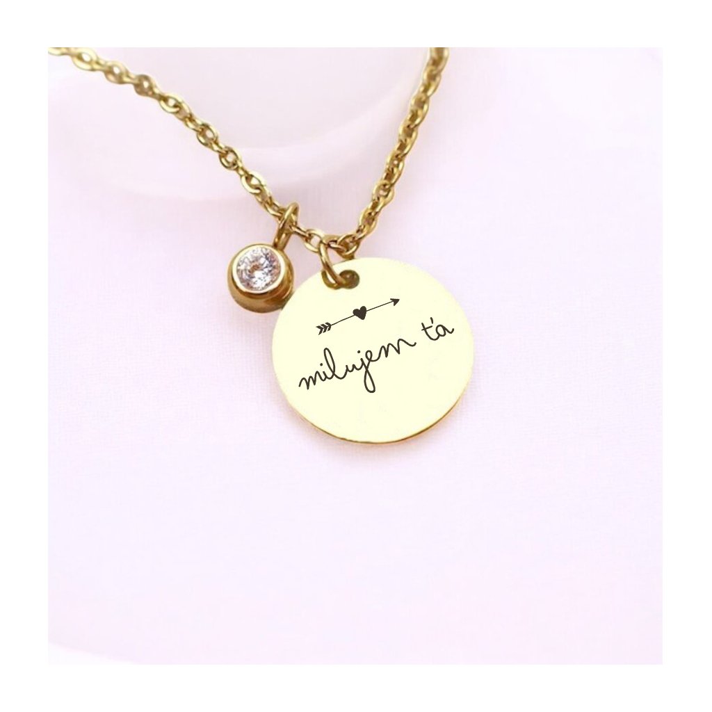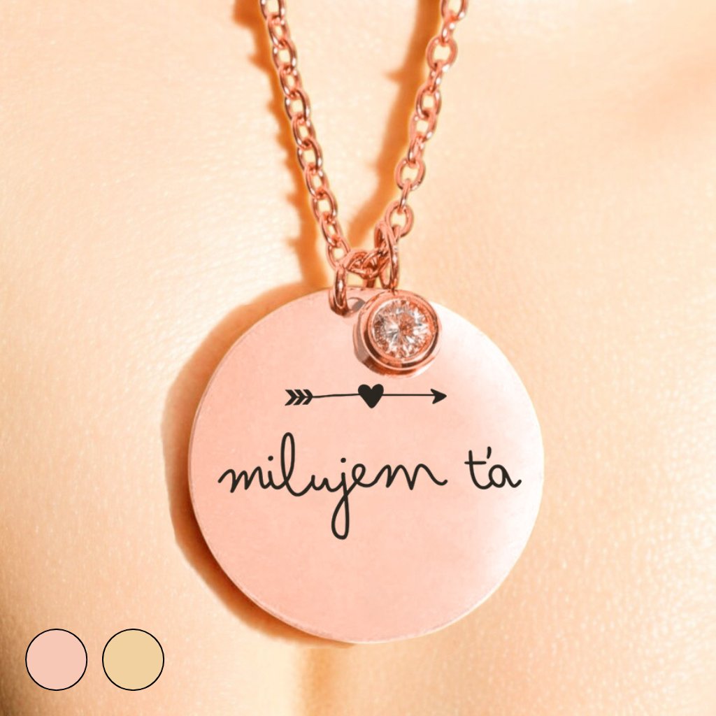 Luxusný Náhrdelník - Medailónik na retiazke so zirkónom - Milujem Ťa